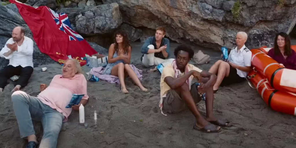 Östlund, elbette bu fırsatı kaçırmaz ve eşitlik idealinin imkânını yeni bir bağlamda test eder. Fırtınanın batıramadığı gemi, korsan saldırısında batar ve içinde mürettebatın da bulunduğu sekiz kişilik bir grup insan ıssız olduğunu zannettikleri bir adada bulur kendini.